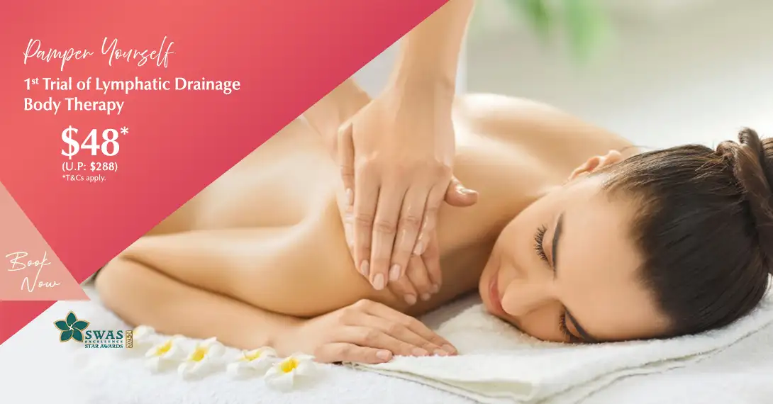 1st Trial of Lymphatic Drainage Body Therapy at $48* (U.P: $288) (Off-Peak: Mon-Fri, last appointment at 5pm) | (Mon-Fri, appointment after 5pm & on weekends) at $68*